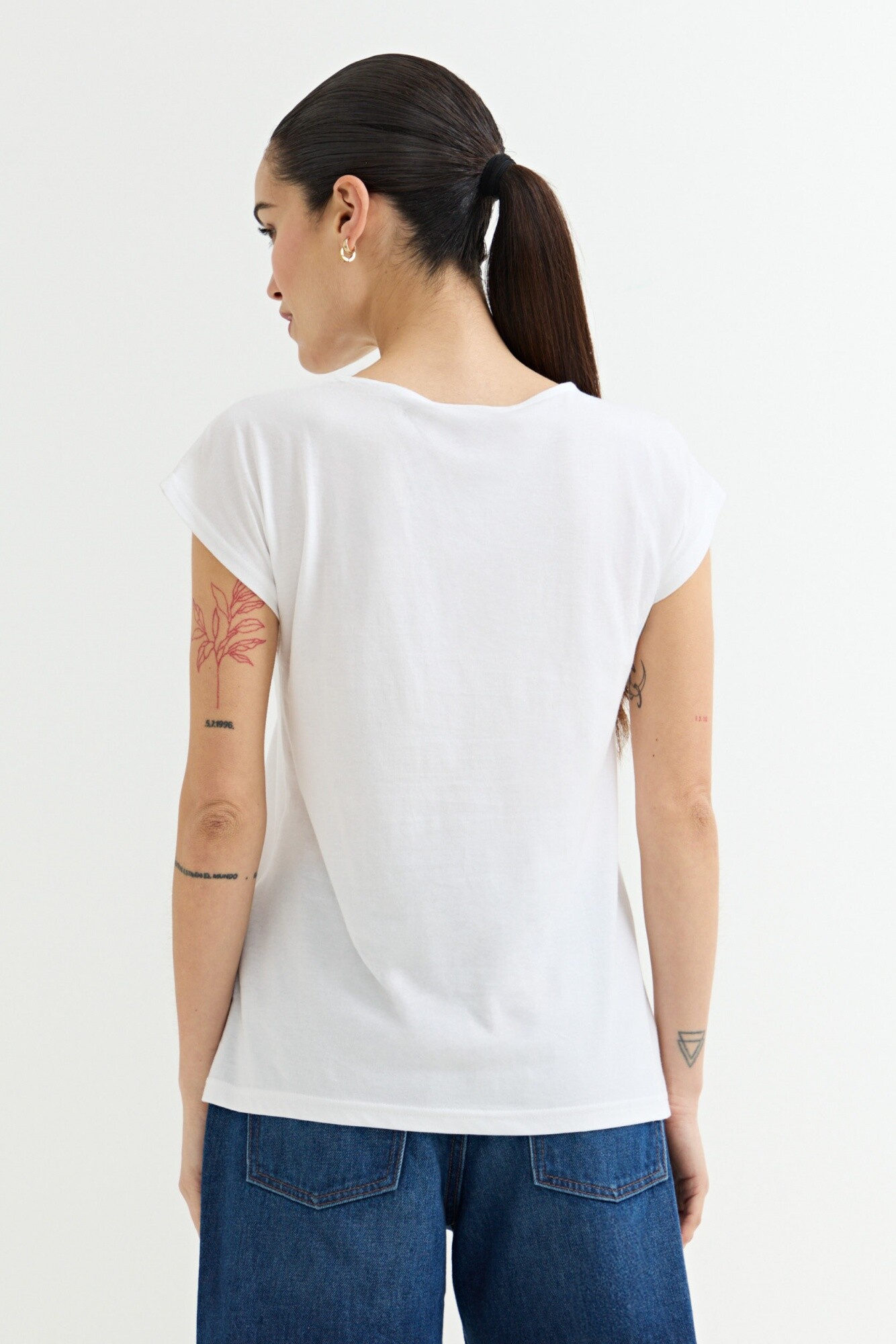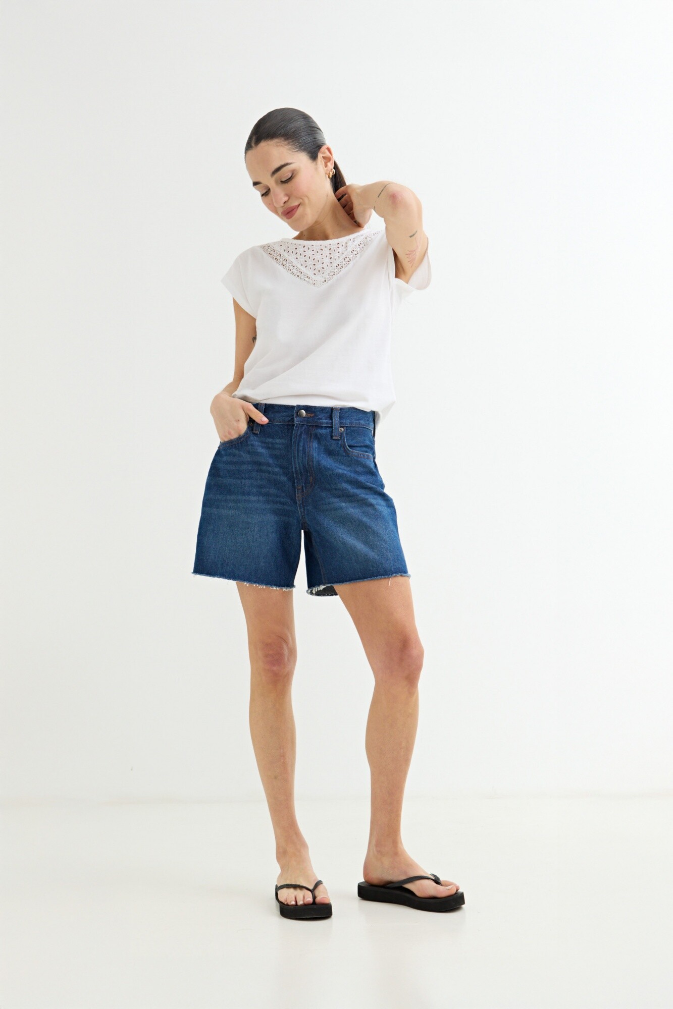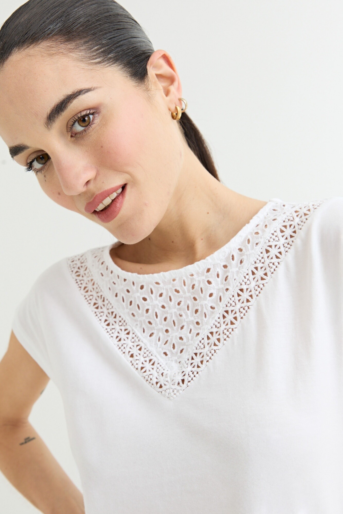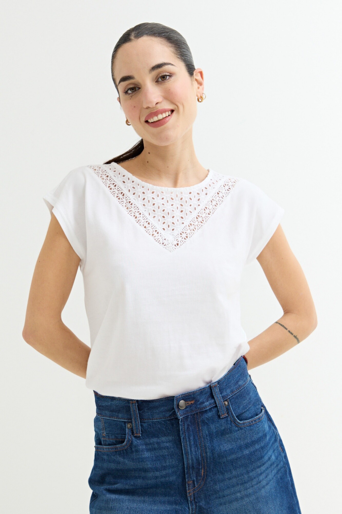 Remera con detalle en broderie - Blanco