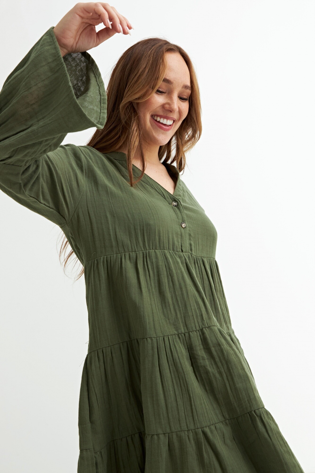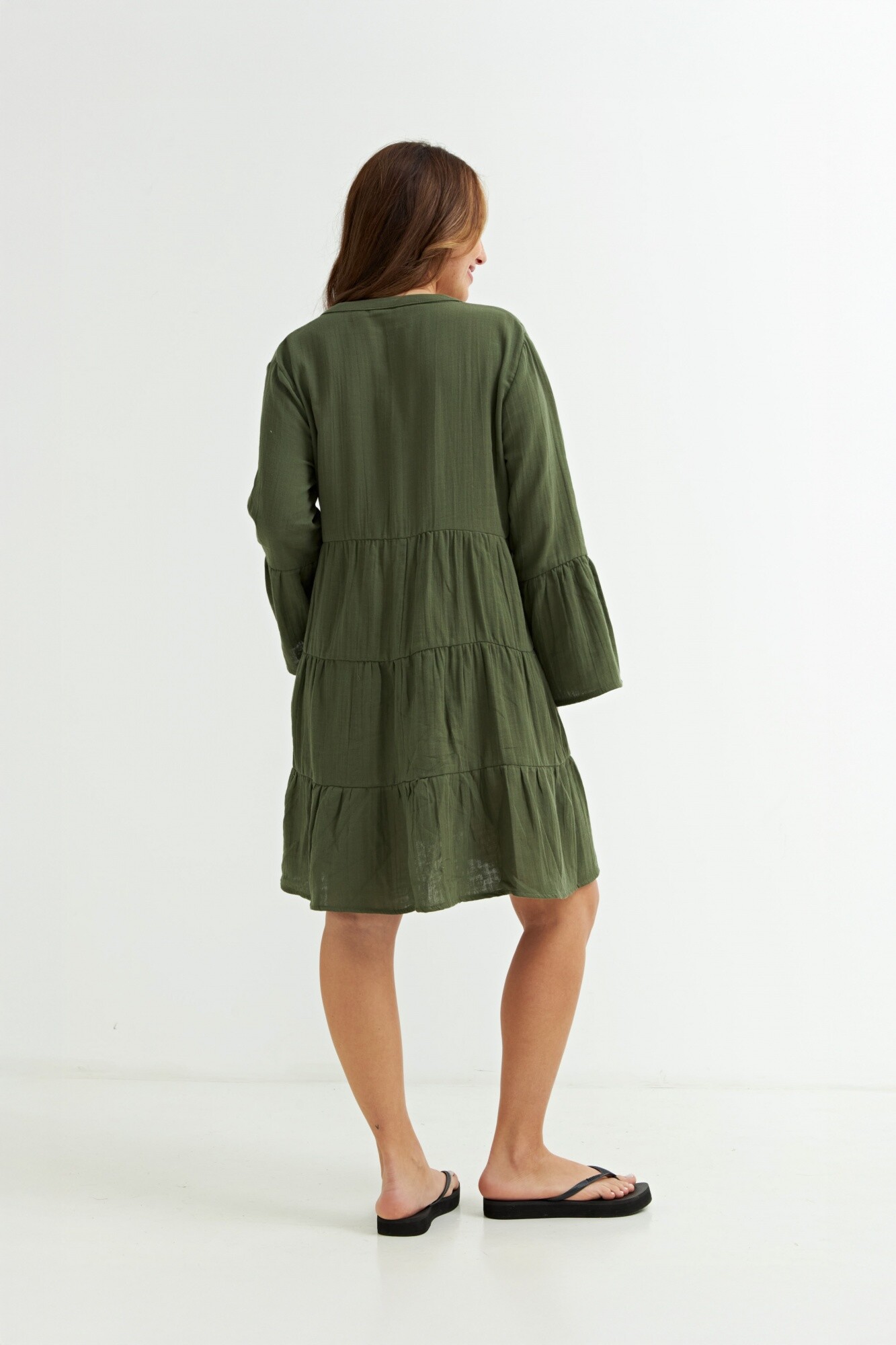 Vestido con volados manga 3/4 - Verde oliva